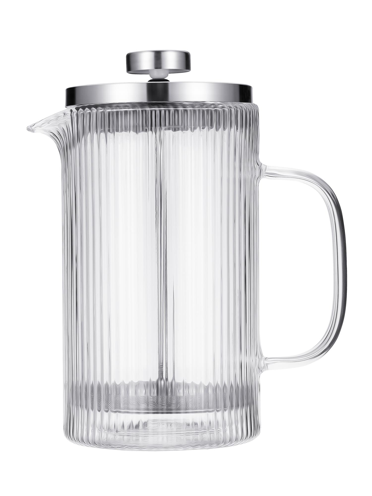 Боросиликатное стекло устойчиво к кислотам, солям и накипи, не впитывает запахи. Поршень-фильтр из нержавеющей стали 18/10 не подвержен к истиранию и прослужит максимально долго.