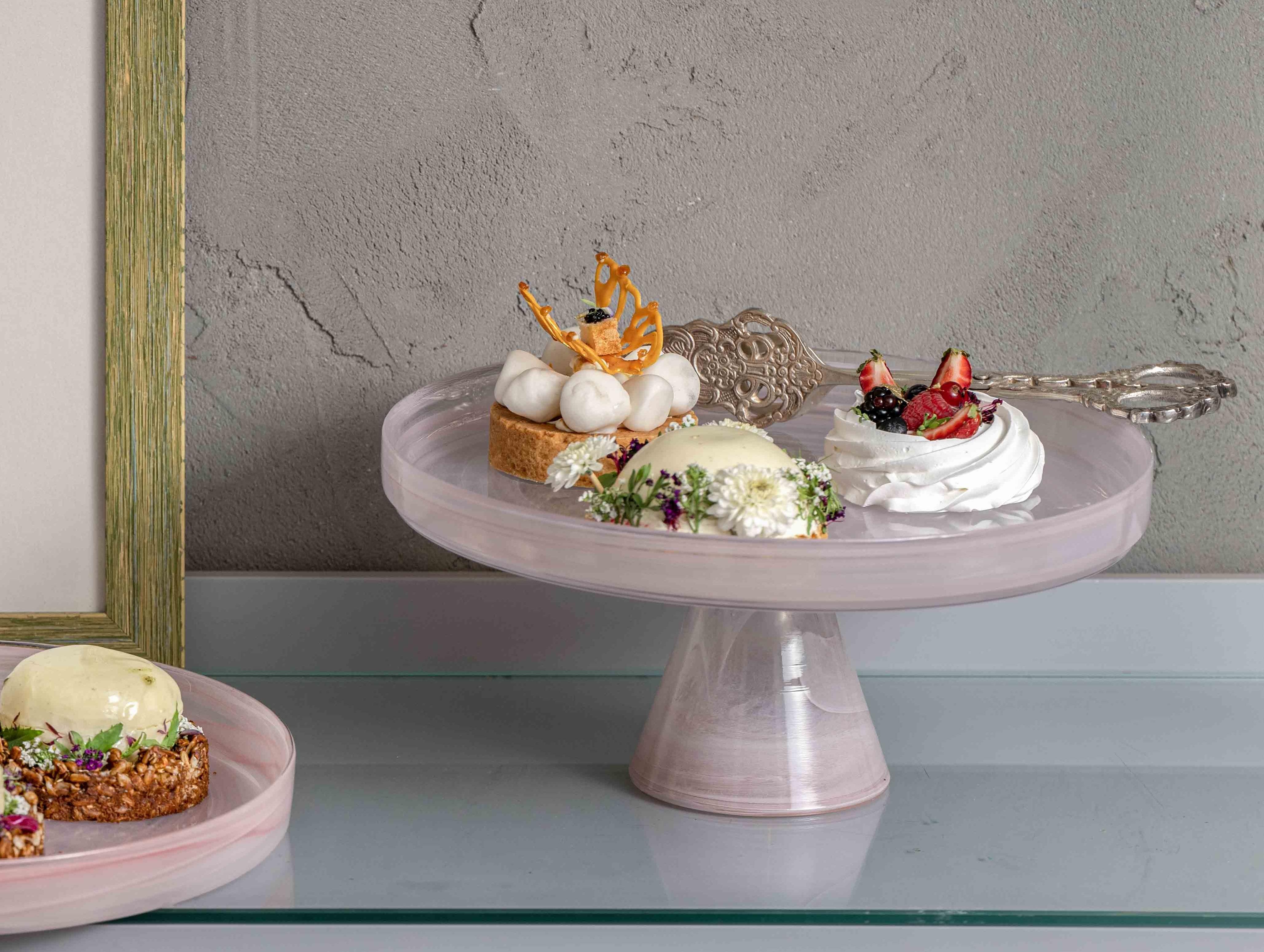 Блюдо на ножке d 28 см h 10 см, стекло, цвет / декор бело-розовый, Asos