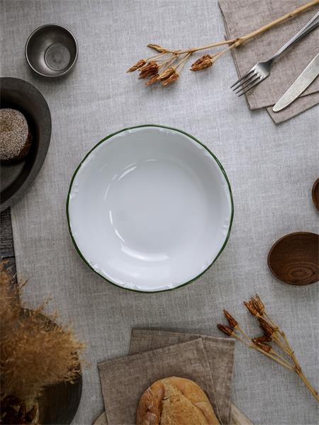 Салатник 23 см, кант зелёный