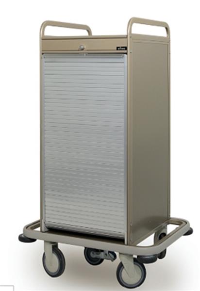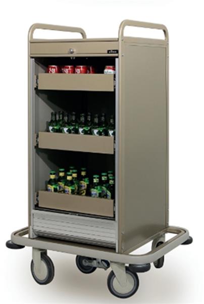 Тележка для минибара EFS 3M, размер: 960x600x1290 мм, 3 ящика, рольставни с замком, 4 поворотных колеса Ø150 мм, 2 шт. с тормозами и 1 дополнительным 5-м роликом «RS5» и защитным бампером, цвет на выбор