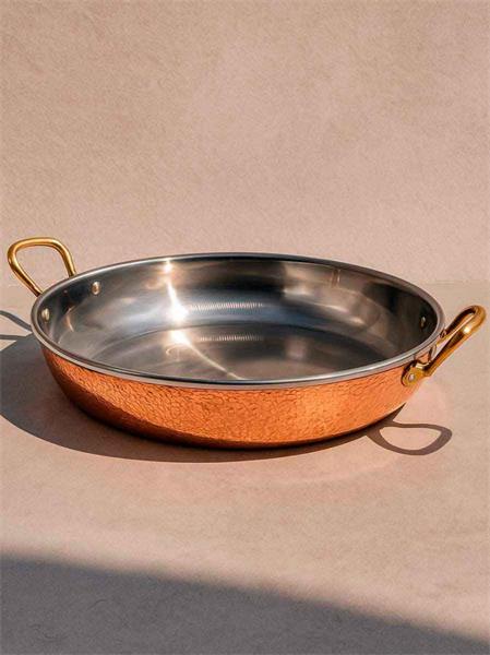 Сковорода 23х4,5 см с двумя ручками "Бином", медная с нержавеющей сталью, с тиснением и полировкой
