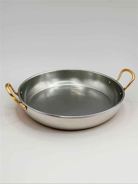 Сковорода 23х4,5 см с двумя ручками "Бином", латунная с нержавеющей сталью, полированная